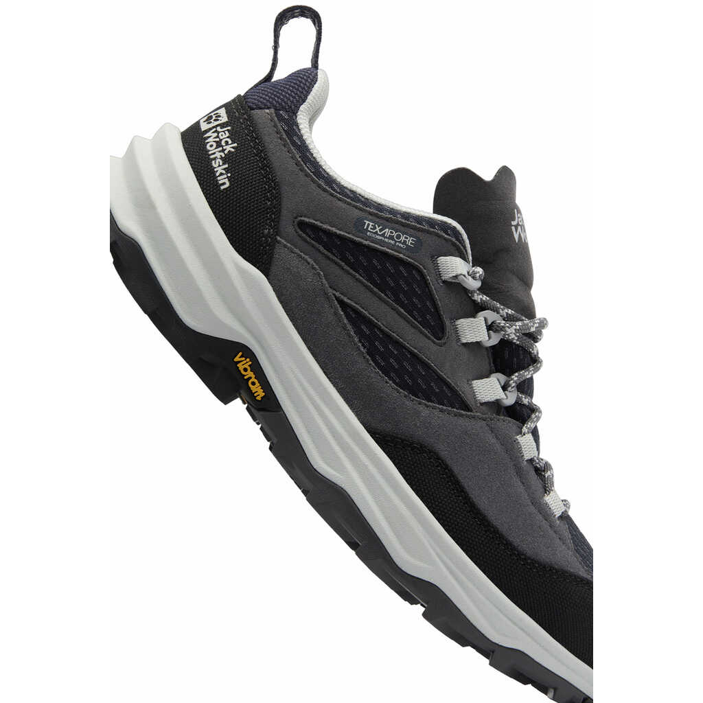 Верх черевиків виготовлений із комбінації текстилю та шкіри, що забезпечує легкість і комфорт протягом усього дня. Перероблена мембрана TEXAPORE ECOSPHERE PRO є водонепроникною і повітропроникною, що дозволяє ногам залишатися сухими навіть у дощову погоду чи під час переходу через мокрі ділянки маршруту. Водонепроникність мембрани становить 20 000 мм, а повітропроникність – 6.300 г/м?/24 год, що гарантує високий рівень захисту та комфорту.