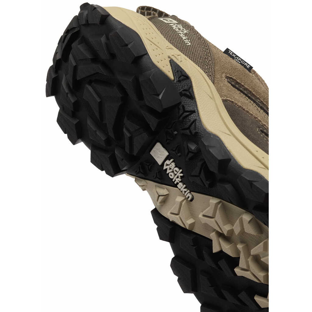 Завдяки використанню технології TEXAPORE CORE, черевики гарантують надійний захист від вологи та залишаються повітропроникними, що дозволяє ногам залишатися сухими навіть у дощову погоду чи на мокрій поверхні. Амортизуюча проміжна підошва EVA забезпечує чудове поглинання ударних навантажень, створюючи додатковий комфорт під час довгих прогулянок або трекінгових маршрутів. Міцна гумова підошва з надійним зчепленням дарує впевненість на різних типах поверхонь – від кам’янистих стежок до вологого ґрунту.