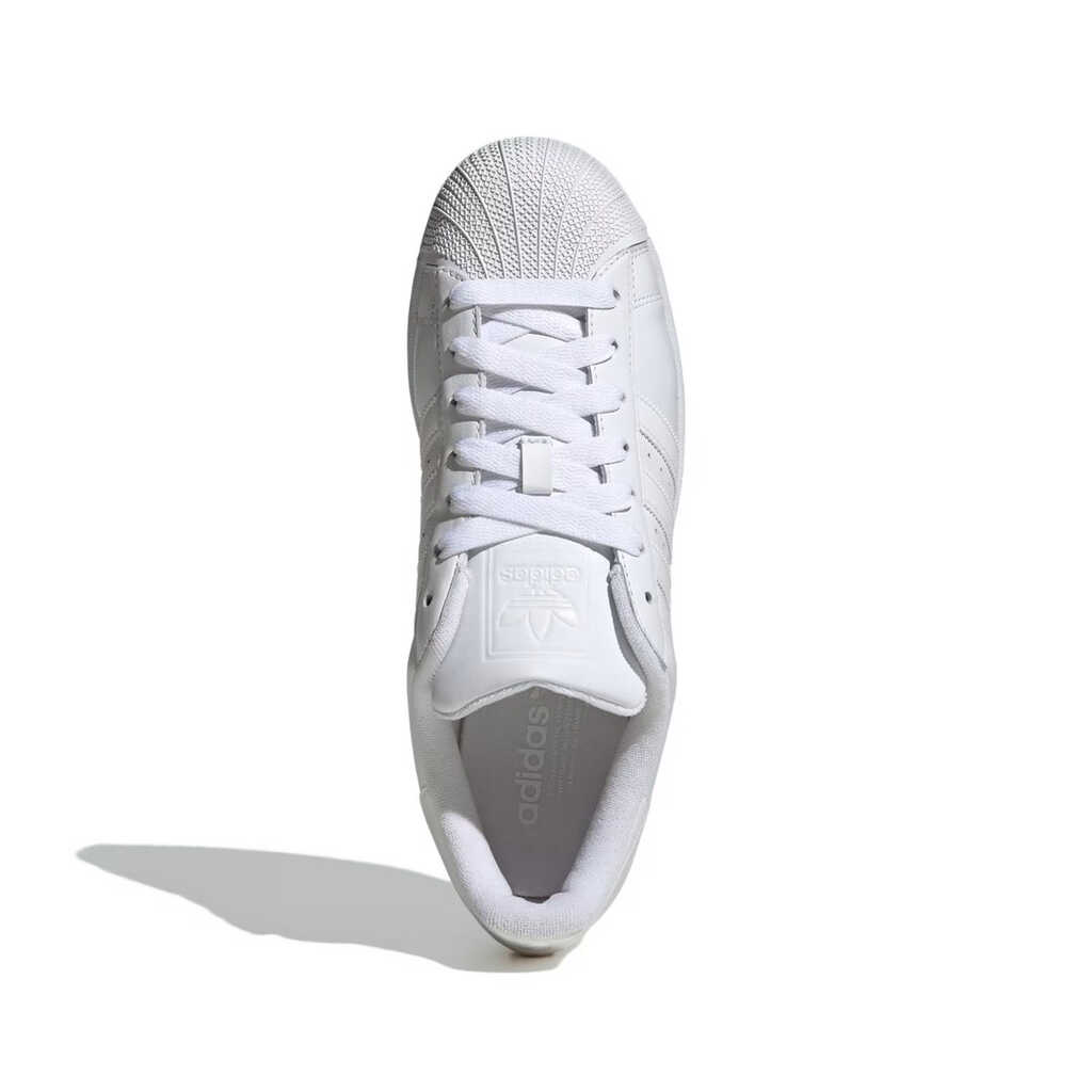Верх из гладкой кожи создает элегантный вид и обеспечивает прочность, тогда как фирменная закругленная резиновая накладка на носке защищает пальцы и придает культовый штрих, который сделал Superstar узнаваемыми во всем мире. Мягкий внутренний текстильный слой и уплотненный язычок гарантируют комфорт во время ежедневного использования, сохраняя легкость даже при длительном движении.