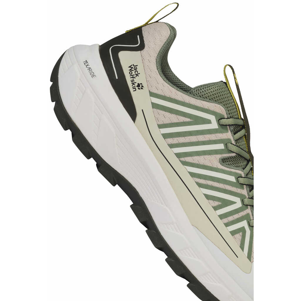 Ключевую роль играет технология TEXARIDE, отвечающая за энергичный отклик и стабильность во время движения. Внешняя резиновая подошва с высоким уровнем сцепления обеспечивает надежную опору на разных поверхностях и придает уверенность в каждом движении. Модель производится в соответствии со стандартами Fair Wear Foundation, что подчеркивает ответственный подход бренда к условиям производства.